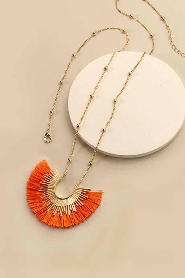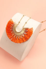 Locally Made Sunburst Fringe Tassel Necklace - Orange
