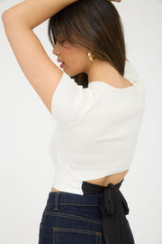 Back Tie Short Sleeve Sweater Knit Crop Top