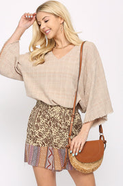 Woven Prints mixed Shorts with Raw Hem and Side Pockets