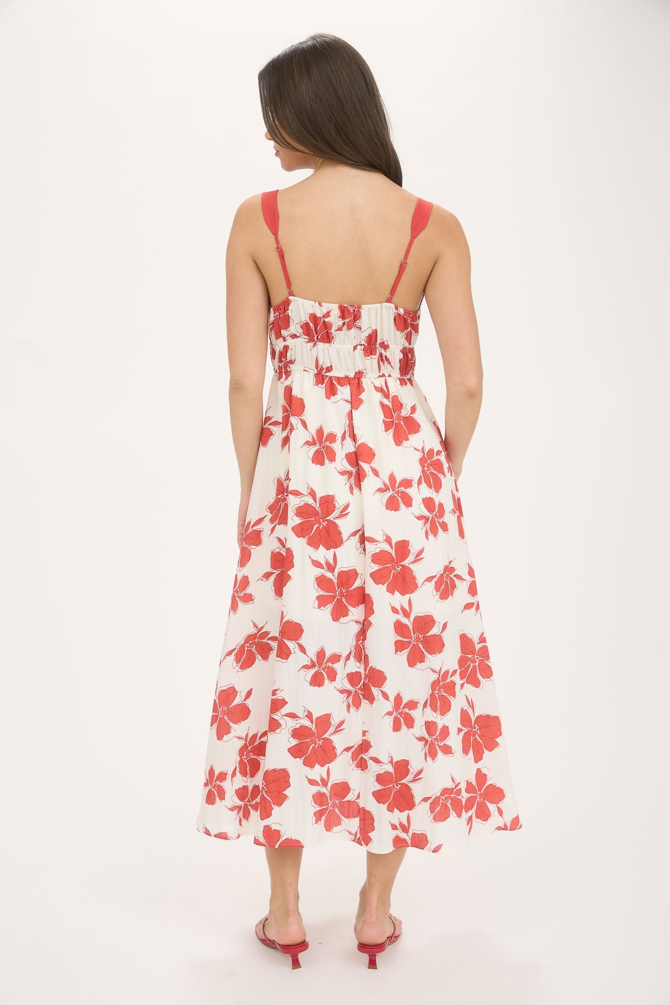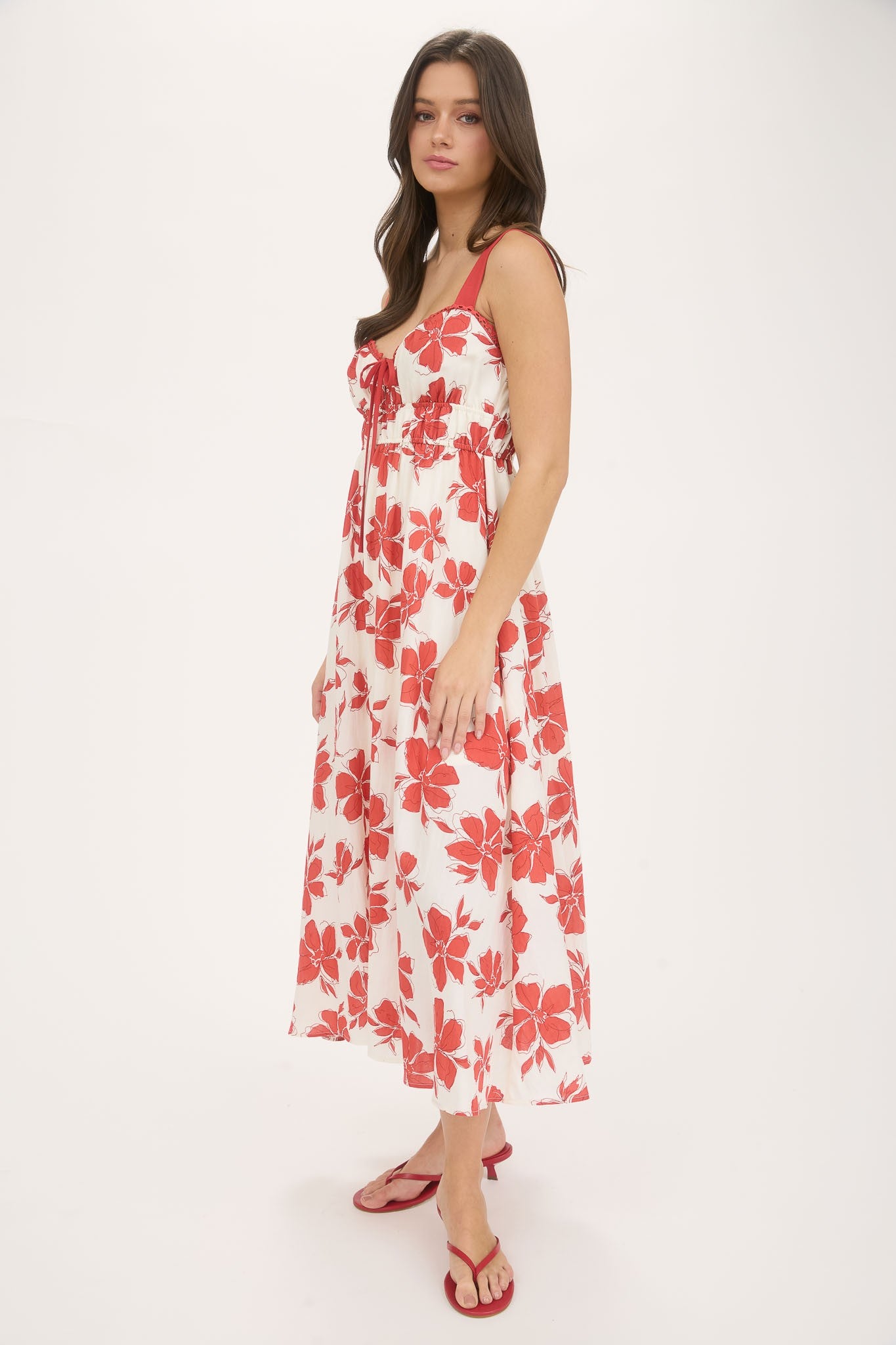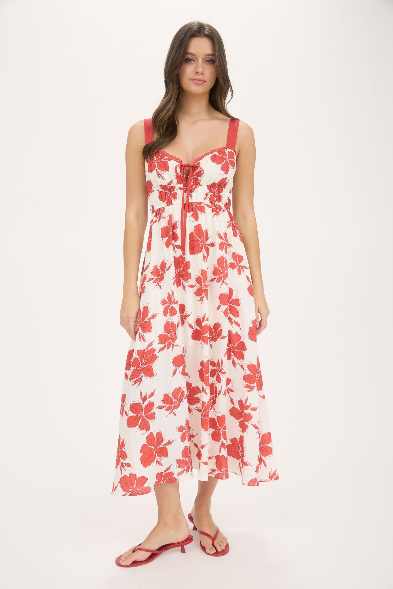 Floral Sweetheart Front Tie With Cutout Midi Dress