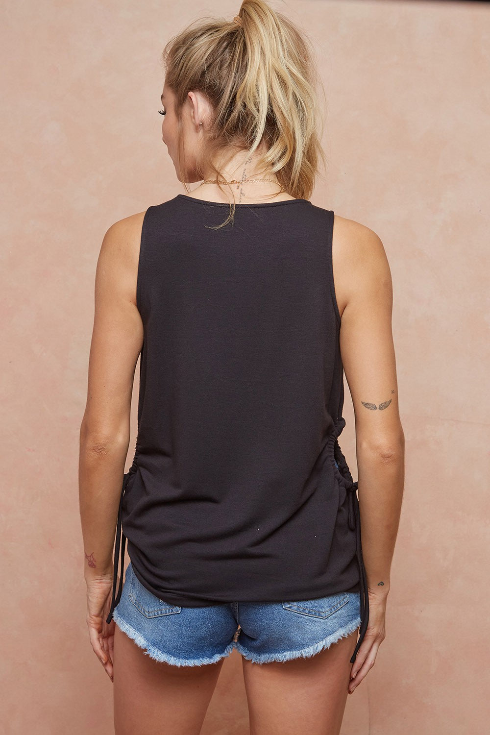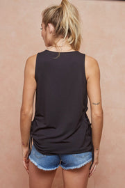CINCHED CUT-OUT SIDE CROP TOP IS THE PERFECT BASIC PIECE TO THROW ON WITH JEANS, SHORTS OR LOUNGEWEAR!
