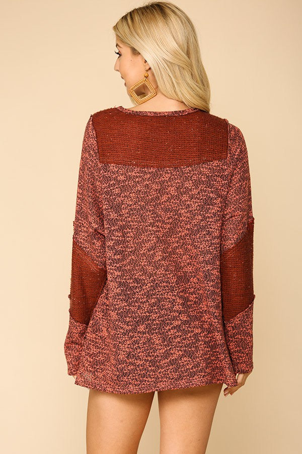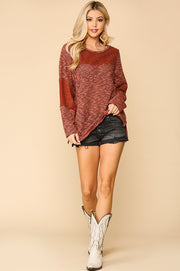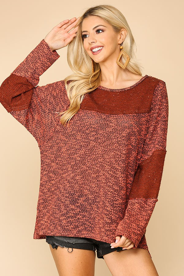Multi Textured Dolman Sleeve Knit Sweater Top