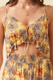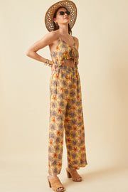 Floral Ruffled Cutout Wide Leg Jumpsuit