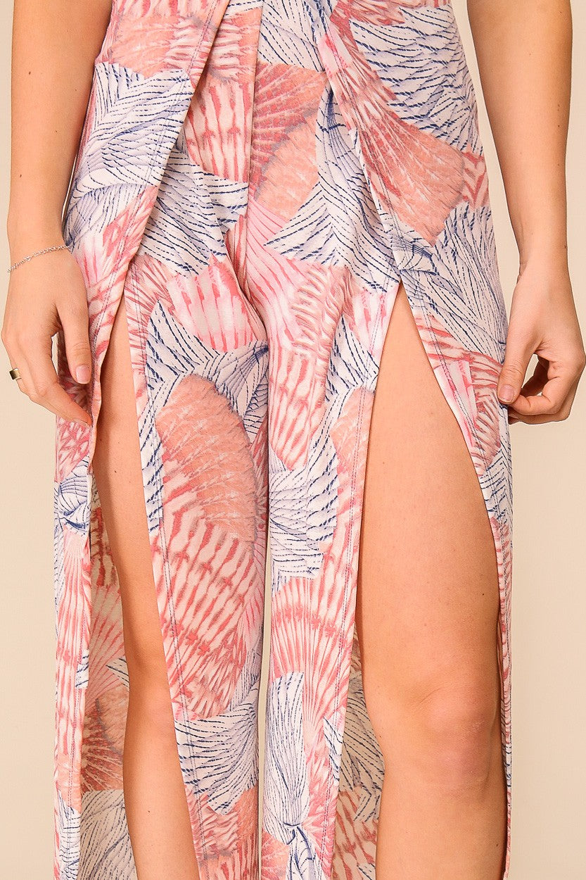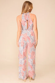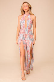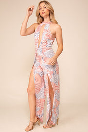 Halter Print Jumpsuit With Slits