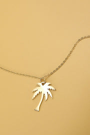 This necklace is designed to resist tarnishing, ensuring it maintains its radiant finish through everyday wear. The intricately detailed palm tree pendant captures the essence of a beachside paradise, adding a touch of exotic sophistication to any outfit.